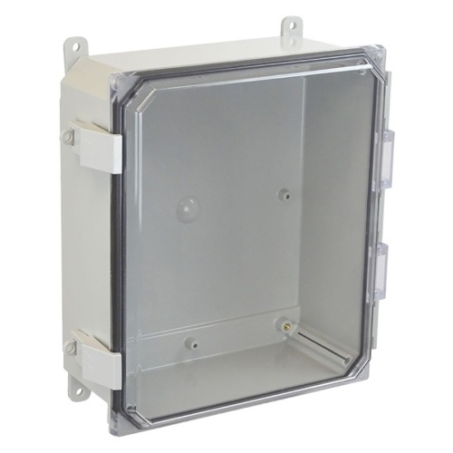 Allied Moulded AMP1204CCNL POLYLINE AMP Series JIC Size Polycarbonate Enclosure with Clear Covers 10" x 8" x 6" (HxWxD) Approx. Inside Dimensions Nonmetallic Snap Latch Hinged Cover.