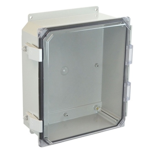Allied Moulded AMP1204CCNLF POLYLINE AMP Series JIC Size Polycarbonate Enclosure with Clear Covers 12" x 10" x 4" (HxWxD) Approx. Inside Dimensions Nonmetallic Snap Latch Hinged Cover.