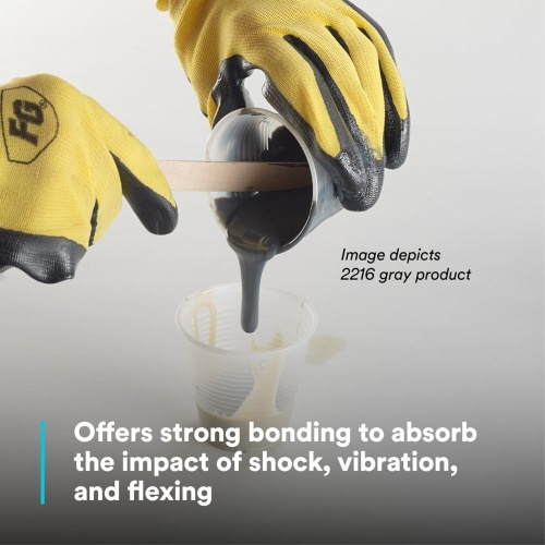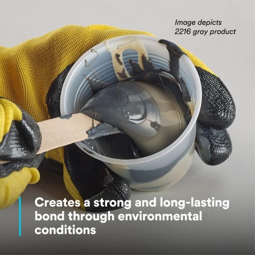 3M Scotch-Weld™ Epoxy Adhesive 2216 is a high-performance epoxy adhesive designed for bonding, potting, sealing, and encapsulating applications. It has a flowable liquid form and a self-leveling viscosity, making it suitable for various industries such as construction, electronics, and military applications. The adhesive offers a shear strength of 3200 psi and a hardness of 35-50 Shore D. It has a work time of 90 minutes and a full cure time of 7 days at 72 °F. The adhesive is flame retardant and has a maximum operating temperature of 350 ℉. It comes in a 1-quart container and has a mix ratio of 1:1. The adhesive can withstand temperatures ranging from -55 ℃ to 80 ℃. Suitable for indoor and outdoor applications.