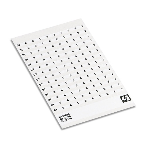 Phoenix Contact 0804280:0001 A marker card is a self-adhesive label featuring horizontal numbering from 1 to 10, divided into 10 sections, each representing a decade, and comes in a set of 14 identical strips. The marker card is white in color and has a width of 5.08 mm, with an adhesive mounting type allowing for easy attachment to terminal blocks.