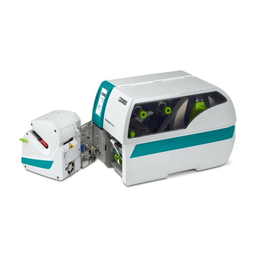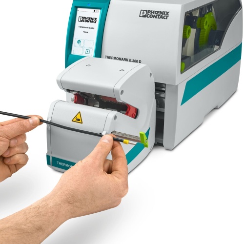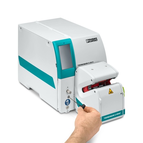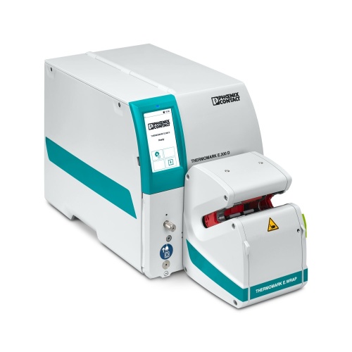 Phoenix Contact 1287056 The device set includes an EWRAP applicator and a THERMOMARK E.300 D BASIC printing system, designed to print and apply E-WML wire-wrap labels onto wires and cables.