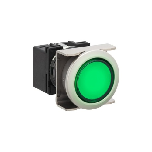 IDEC LB6MP-1T04VG - Sleek flush mount design, Standard bezel with 16mm hole size also available, Bright LED illumination, 27.9mm depth behind the panel, 3PDT contact block available, 5A contact ratings, IP65 degree of protection, Metallic or black plastic bezels, Illuminated pushbuttons, pushbuttons, pilot lights, selector switches, key selector switches, illuminated selectors, lever selectors, dome pilot lights, lever switches and buzzer models, Special wave keys available