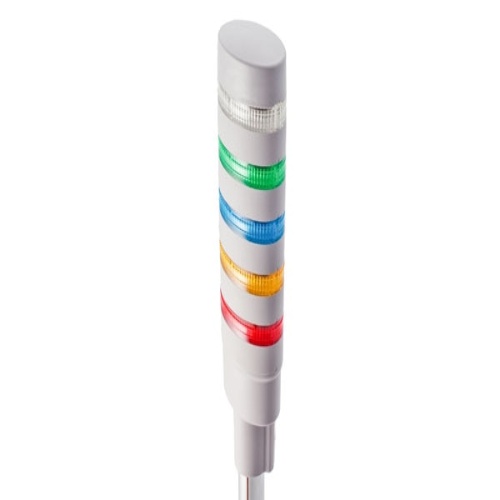 5 tiers, pole mount with L-shaped bracket, light gray base, steady, red, yellow, green, blue and white color