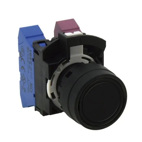 IDEC HW1B-A1P10B - Non-illuminated Pushbutton, flush operator, alternate, Push-in-terminal, plastic bezel, black button, 1no contact