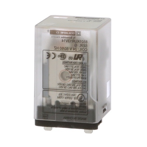 Schneider Electric 8501KUR13V14 K type plug in relay 10 A @ 240 VAC Three Pole 24 VAC coil No Indicator Socket mount. This relay have standard pin and wiring configurations and are designed for multi-pole switching applications. Have 1 hp @ 277 VAC and 0.33 hp @ 120 VAC motor load ratings.