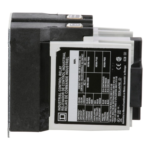 Schneider 8501XO40V02 Square D Industrial NEMA Relay 4-NO Single Throw 110 VAC 50 Hz AC 50/60 Hz coil. This type X relay is a heavy duty modular design to make it more flexible in use. This relay uses Screw Connection Panel mount 10 Amp AC 5 Amp DC UL 508 Listed