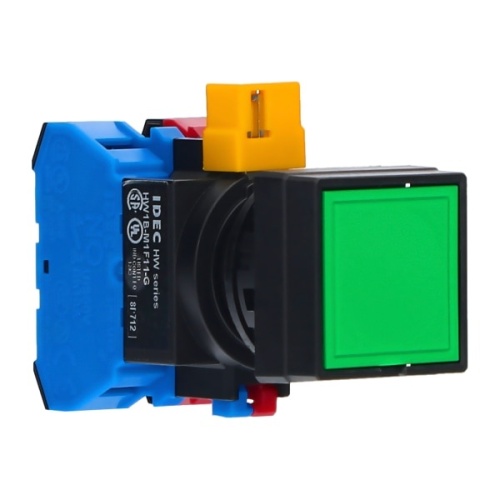 IDEC HW2B-M1F10-Y-ENGRAVED - Non-illuminated Pushbutton, square_flush, momentary, screw-terminal, plastic bezel, yellow button, 1no contact