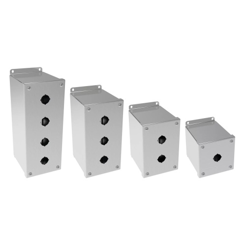 nVent Hoffman E2PBGXSS Stainless Steel 22.5mm Push Button Enclosure Designed to house 22.5-mm oil-tight pushbuttons, switches and pilot lights. Enclosures provide protection against dust, dirt, oil and water. Extra-deep design accommodates additional contact blocks for pushbuttons.