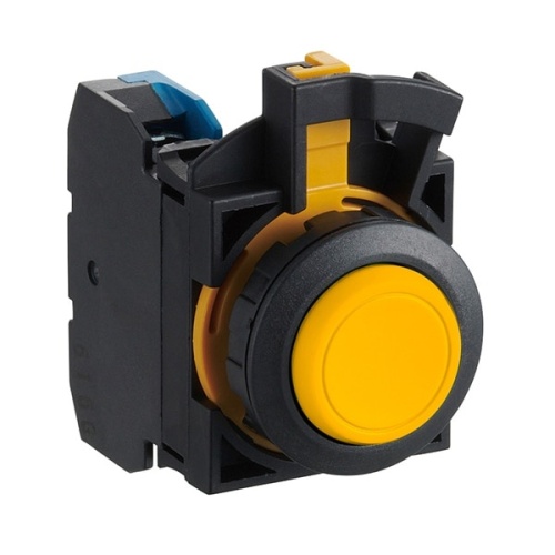 Pushbutton, Non-Illuminated, black bezel, extended, momentary, screw terminal, yellow color, 2no contacts