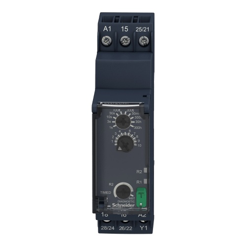Schneider RE22R2CMR Zelio Time Delay Relay 24-240 VAC/DC 0.05 s-300 h Timing after opening of control contact 1 NO/NC timed or instantaneous contact, 2 NO/NC timed contact 8 Amp