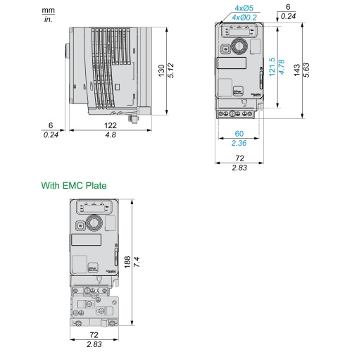 Schneider ATV320U04M2C Altivar VFD 0.5 HP 380-500 Volt input 3 Phase