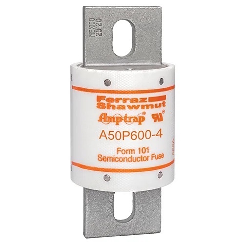Mersen A50P600-4 - A50P Amp-Trap® Form 101 high speed fuses were developed for DC drives, uninterruptable power supplies and similar applications requiring better protection (lower I2t) and superior reliability. The A50P is typically used for replacement.
