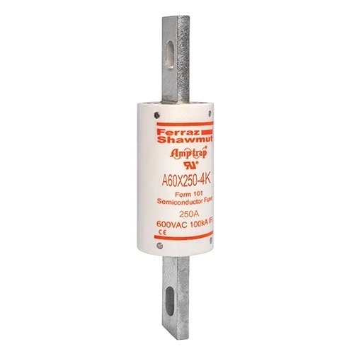 Mersen A60X250-4K - A60X Amp-Trap® Form 101 high speed fuses are popular for the protection of higher voltage heavy rectifiers such as traction rectifiers. They can carry long sustained overloads common with heavy duty apparatus. 700A through 2000A sizes are of compact, hockey-puck design, able to provide high power protection in a small space.