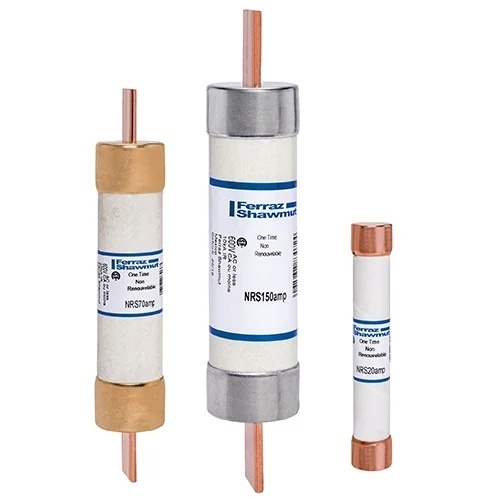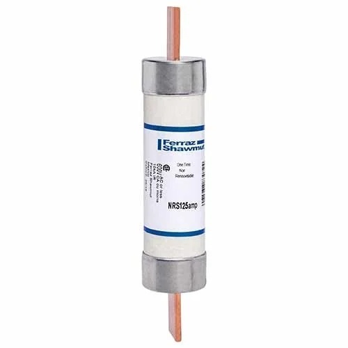 Mersen NRS125 - Mersen NRN (250V) and NRS (600V) fuses are standard non-time delay fuses, with a 10kA short circuit rating. 250 Volt NRN15 through NRN60 fuses are certified as Type "P" fuses, satisfying the Canadian Electrical Code for low melting-point non-time delay fuses. Also qualifying for Type "P" are OTN15 through OTN60, which are Class K-5 fuses with a 50kA short circuit rating (found in the OT/OTS fuse section).