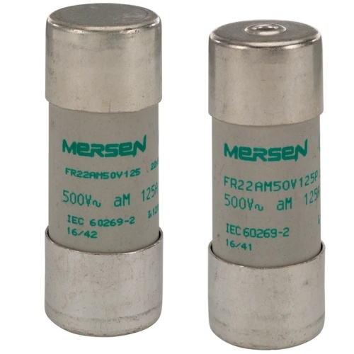 Mersen R214122 - Mersen aM and gG fuse-links cover a wide range of physical sizes and ampere ratings for 400, 500, and 690VAC for protection in electrical distribution circuits and various industrial applications. Most ratings are available in size 8x31 and size 10x38 with an optional indicator, and in size 14x51 and 22x58 with an optional striker to activate an auxiliary contact. Size 10x38 is also available with striker. All cylindrical fuse-links have ceramic bodies and silver-plated contacts.Cylindrical fuse-links "aM" are partial range fuses. They protect electrical devices in case of unacceptable high short-circuit against destruction due high current limiting and low thermal let-through values. They cut off currents more than 6.3xln until the maximum breaking capacity (rated breaking capacity). Cylindrical fuse-links "aM" are mainly used for the protection of installation switch gear in otor circuit currents. For classification of the cylindrical fuse-links the nominal current of the fuse-link can be selected respective to the nominal current of the motor.Our technology and process was designed to ensure highly reliable technical performance.