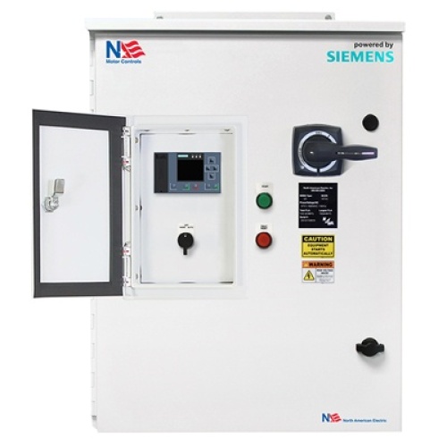 NAE 3143B-0503RP00-32B-2-000 - 50 HP, 240V, Soft Starter Panel, Heavy Duty, Package includes: Illuminated start pushbutton, Hand/Off/Auto (HOA) selector switch, Illuminated fault / Reset pushbutton, Door mounted HMI, 146 Amps, NEMA 3R Enclosure, Through-Door, Circuit Breaker Disconnect, Dimensions 40'' H, 24'' W, 12'' D, Siemens Chassis Model # 3RW5243-6AC14