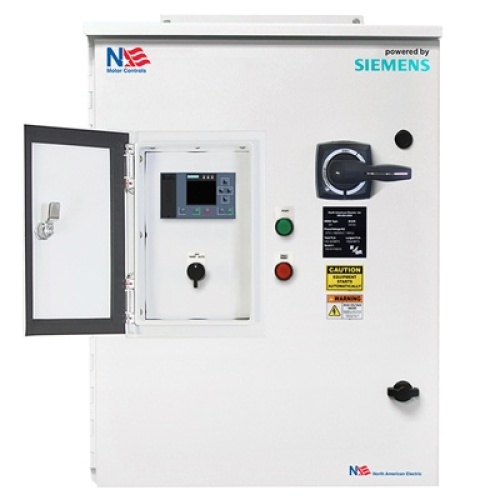 NAE 3145B-0503RP00-24H-2-000 - 50 HP, 240V, Soft Starter Panel, Heavy Duty, Package includes: Illuminated start pushbutton, Hand/Off/Auto (HOA) selector switch, Illuminated fault / Reset pushbutton, 146 Amps, NEMA 3R Enclosure, Through-Door, Circuit Breaker Disconnect, Dimensions 42'' H, 30'' W, 16'' D, Siemens Chassis Model # 3RW50726AB14