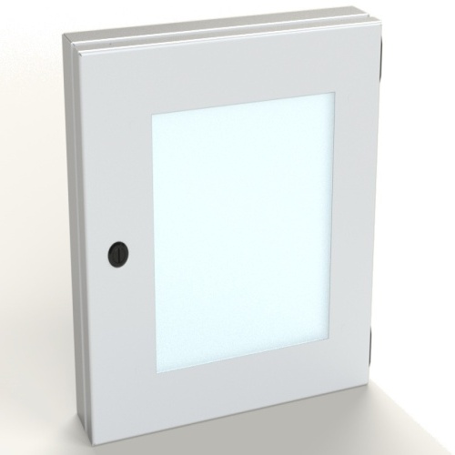 Application: Designed to mount on the exterior of an enclosure to provide protection for controls with easy access. ELJ hinges. Black mini quarter turn latches. UV stable polycarbinate viewing window. Gasket and hardware included. For outdoor application a drip shield and drain vent is recommended.For Details about the design, performance expectations, applications and design suggestions - See Design Considerations www.saginawcontrol.com/instman/considerations.pdf