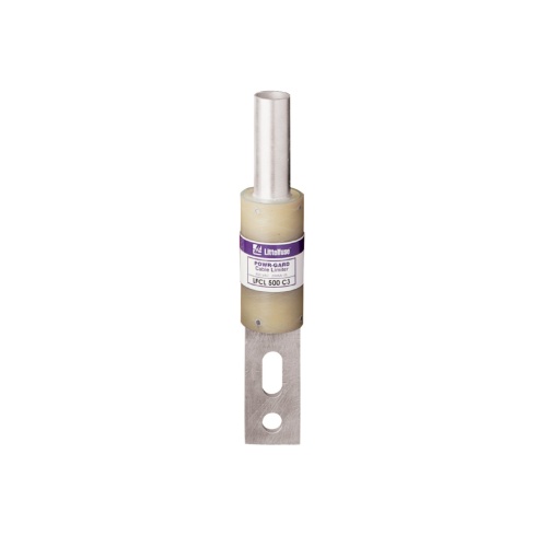 Littelfuse LFCL0002ZC1 - LFCL- Cable limiters are fusible devices that provide very fast short-circuit protection, primarily to faulted cables, but also to other conductors such as busway. Cable limiters do not have an ampere rating, and cannot be used to provide overload protection. Cable limiters are selected by cable size; for example, a 500 kcmil cable requires a 500 kcmil cable limiter. Their main use is to isolate faulted cables in circuits containing three or more parallel conductors per phase. They may be installed on the line side of the main service to provide short-circuit protection to the service conductors. This is especially important when service conductors are tapped from large low-voltage networks or from large low impedance transformers. Cable limiters have terminals which permit them to be installed in a variety of equipment. The most common configuration is the offset blade on one end and the crimp terminal on the other end. This permits the limiter to replace a cable terminal (lug). Applications:-Service entrance conductors-Between transformers or network bus and busway terminal boxes-Large feeders with three or more conductors per phase-Features:-Current-limiting characteristics provide protection to conductor insulation and reduce damage when faults occur.-Properly applied cable limiters may permit the use of equipment with reduced withstand ratings.-Wide variety of terminations and cable ratings permit use in almost every situation.