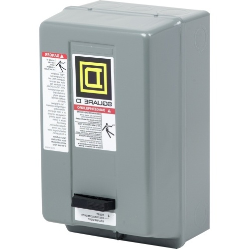 Schneider 8536SCG1V02 Square D Nema Motor Starter 120 VAC Coil 2 Poles Size 1 27 Amp with NEMA 1 enclosure. Runs 2 @ 120 V Single Phase and 3 @ 230 V Single Phase. This Square D starter is built to last. Schneider has build this starter to have replacable parts making future fixe
