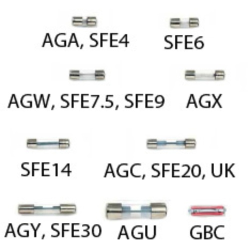 Originally stood for “all glass.” The automotive industry uses the “AG” prefix (AGC, AGW) for most glass fuses. They vary in length, diameter and amperage rating.