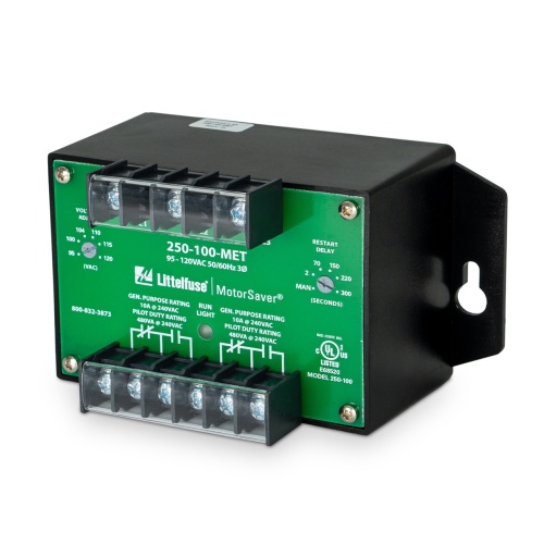 Littelfuse 250-100-MET - 250A Series – Three-Phase Voltage/Phase Monitor Series - 95-120 Volt - #8 screws - Pilot Duty: 480 VA @ 240 VAC; General Purpose: 10 A @ 240 VAC