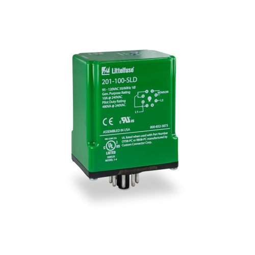 Littelfuse 201-100-SLD - 201 Pump Controls Series – Single-Channel Seal-Leak Detector Series - 110-120 Volt - DIN rail or surface mount (plug into OT08-PC socket) - Pilot Duty: 480 VA @ 240 VAC; General Purpose: 10 A @ 240 VAC