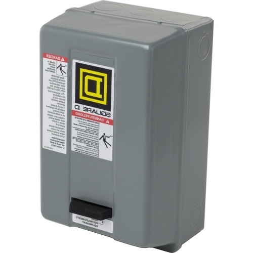 Schneider 8536SCG1V03E Square D Nema Motor Starter 240 VAC Coil 2 Poles Size 1 27 Amp with NEMA 1 enclosure. Runs 3 @ 120 V Single Phase and 5 @ 230 V Single Phase. This Square D starter is built to last. Schneider has build this starter to have replacable parts making future fix