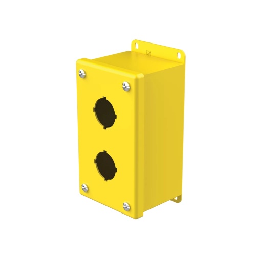 nVent Hoffman E2PBY Mild Steel Push Button Enclosure Steel 30.5-mm Pushbutton Enclosure Type 12,13 indoor use designed to hold 30.5-mm 4-way pushbuttons and switches. No welded seams or sharp corners.