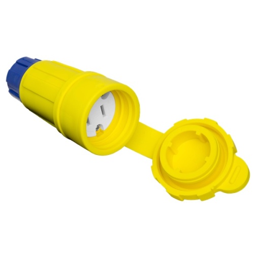 Ericson yellow Extreme Grade watertight connector (1610-CW6P) is suitable for any environment that requires a watertight seal to prevent water ingress. It is ideal for construction sites, entertainment venues, and food processing plants. With a 15 amps rating and NEMA 5-15 configuration, it is CSA certified and NSF/ANSI/3-A 14159-1 compliant. Comes in a case quantity of 50 and carton quantity of 5.