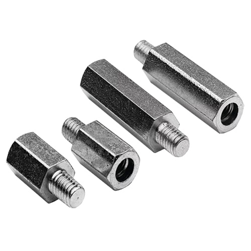 nVent Hoffman APE050 Threaded Panel Extenders with 4 extenders 1/2" in length. Made of plated steel and designed to raise the panel mounting surface. Extenders attach to threaded internal pads. Male and female thread size is 10-32.