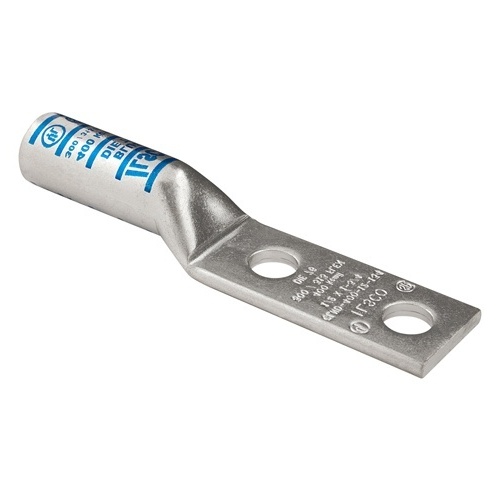 Ilsco CLND-700-38-1 - Surecrimp Copper Compression Lug, Conductor Size 700, 2 Holes, 3/8in Bolt Size, 1in Hole Spacing, Long Barrel, No Sight Window, Tin Plated, UL, CSA
