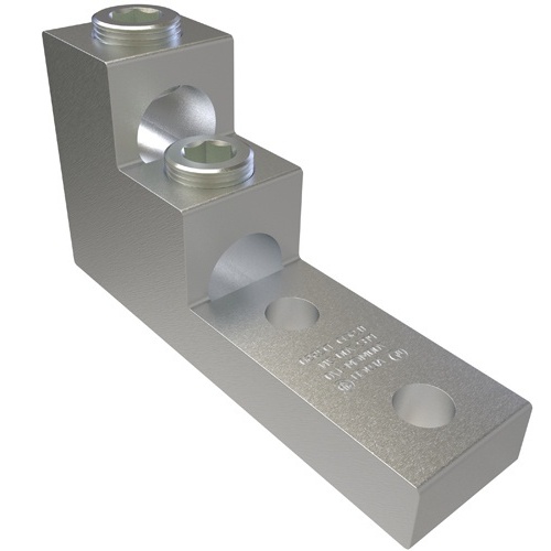 Ilsco PB2-750-2N - Aluminum Panelboard Lug, Dual Rated for 750-1/0 conductor range, 2 ports with 2 holes, 1/2in bolt size. UL/CSA/NEMA listed, tin plated, suitable for 35kV voltage. Mechanical connection, CU/AL stranded conductors. Mounting hole spacing 1.75in, with internal hex drive. Tang dimensions 3.125x1.563x0.75in. Wire binding torque 500 in-lbs.