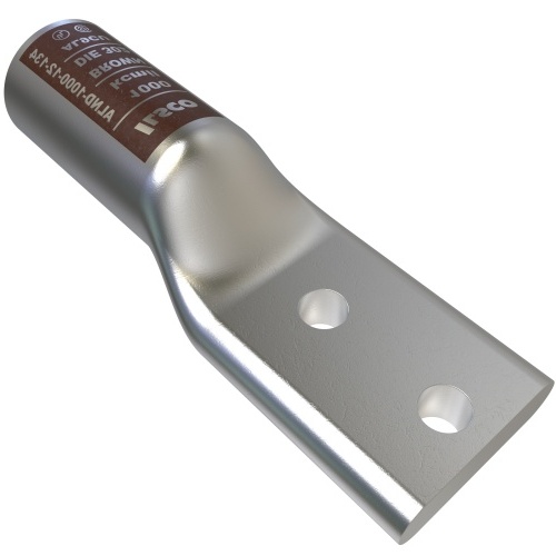 Ilsco ALND-1000-12-134 - Surecrimp Aluminum Compression Lug, Conductor Size 1000, 2 Holes, 1/2in Bolt Size, 1-3/4in Hole Spacing, Long Barrel, No Sight Window, Tin Plated, UL, CSA