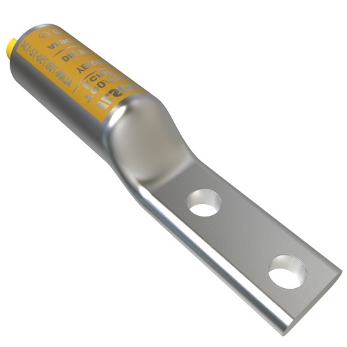 Ilsco ALNN-700/750-12-134 - Surecrimp Aluminum Compression Lug with 2 holes, 1/2in bolt size, and 1-3/4in hole spacing. Long barrel, narrow tang, tin plated finish. UL, CSA, NEMA Code S-588-3. Conductor size 700/750 kcmil, voltage rating 35kV, temperature rating 90°C. Dual rated for CU and AL stranded conductors. Mounting hole spacing 44.45mm. ROHS compliant.