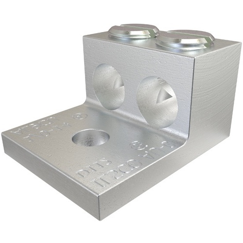 Ilsco AU-0 - Aluminum Mechanical Lug, Conductor Range 1/0-14, 2 Ports, 1 Hole, 1/4in Bolt Size, Tin Plated, UL, CSA