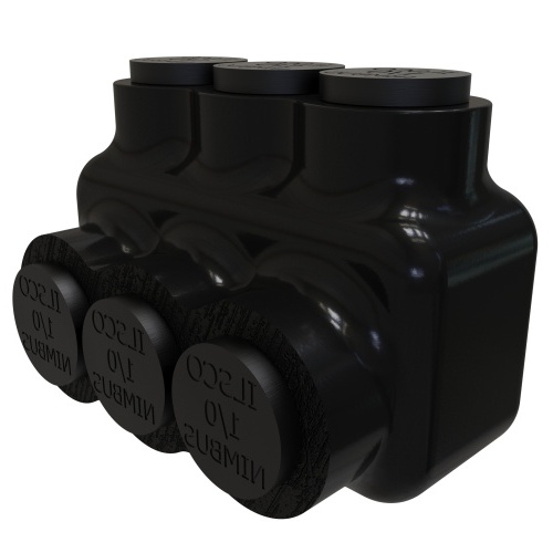Ilsco PBTS-3-1/0 - The Nimbus Insulated Aluminum Multi-Tap Connector is a versatile 3-port connector with single-sided entry and tin plating. It is UL and CSA listed, with a 90°C temperature rating and a voltage rating of 600V. Dual rated for aluminum and copper conductors, it features mechanical connections and is suitable for cold temperatures down to -45°C. Ideal for a variety of electrical applications.
