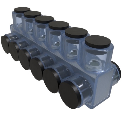 Ilsco ECTD-6-600 - ClearTap Insulated Aluminum Multi-Tap Connector, Conductor Range 600-4, 6 Ports, Dual Sided Entry, Tin Plated, UL, CSA