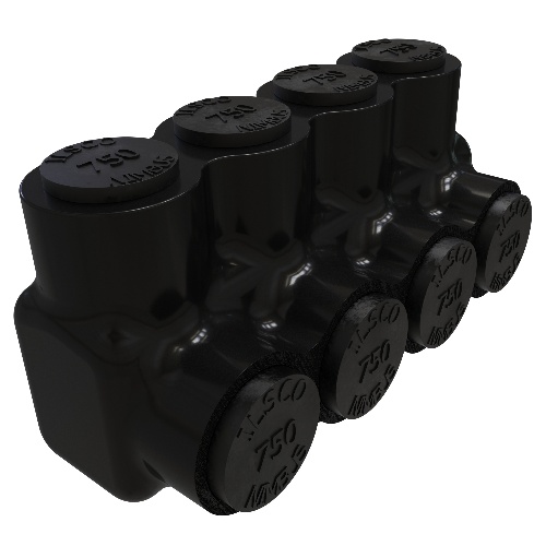 Ilsco PBTS-4-750 - Nimbus Insulated Aluminum Multi-Tap Connector, Conductor Range 750-250, 4 Ports, Single Sided Entry, Tin Plated, UL, CSA