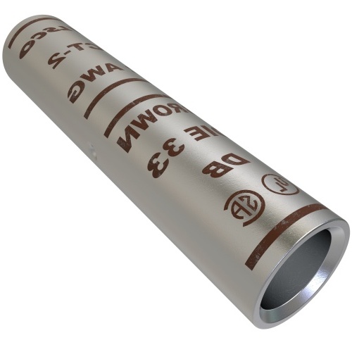 Ilsco CT-2 - Surecrimp Copper Compression Sleeve, Conductor Size 2, Tin Plated, UL Listed. Dual rated: No. Temperature Rating: 90°C. Voltage Rating: 35 kV. Direct Burial approved. Expanded Conductor Range: 2 Str - 6 Str. Suitable for Compression Connections on Copper Conductors. Color Code: Brown. Ilscos Die Index Number: I-33. UL Control Number: 453G.