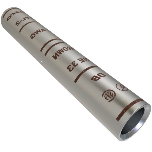 Ilsco CTL-2 - Surecrimp Copper Compression Sleeve for 2 Stranded copper conductors, UL listed. Tin plated for corrosion resistance, suitable for direct burial with a 35 kV voltage rating. Long barrel design with 180° connecting angle. Outside diameter 0.422", inside diameter 0.312". Ideal for a variety of applications needing secure compression connections.