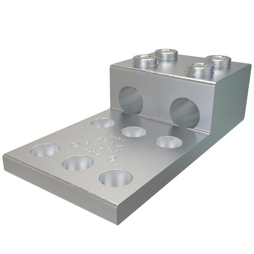 Ilsco AU-350-N - Aluminum Mechanical Lug, Conductor Range 350-6, 2 Ports, 6 Holes, 1/2in Bolt Size, 1-3/4in Hole Spacing, Tin Plated, UL, CSA