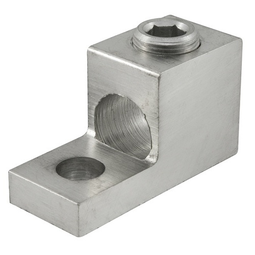 Ilsco TA-800-S - Aluminum Mechanical Lug, 1 Port, 1 Hole, 5/8in Bolt Size, 1-3/4in Hole Spacing, Conductor Range 800-3/0, Tin Plated for added durability. UL, CSA, NEMA Code S-588-3 listed, dual rated for 35 kV. Suitable for stranded aluminum conductors. Temperature rating of 90°C. Drive Type: Internal Hex. Wire Binding Torque: 500.