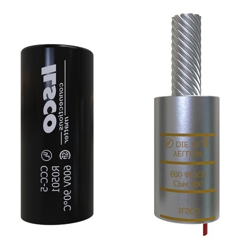 Ilsco CPM-600 - The Copper Compression Pigtail Adaptor is UL, CSA, and NEMA rated, with a conductor size of 600 kcmil. It is dual rated, featuring a temperature rating of 90°C and a voltage rating of 600V. This aluminum conductor adaptor comes with an insulating cover and is suitable for compression connections.