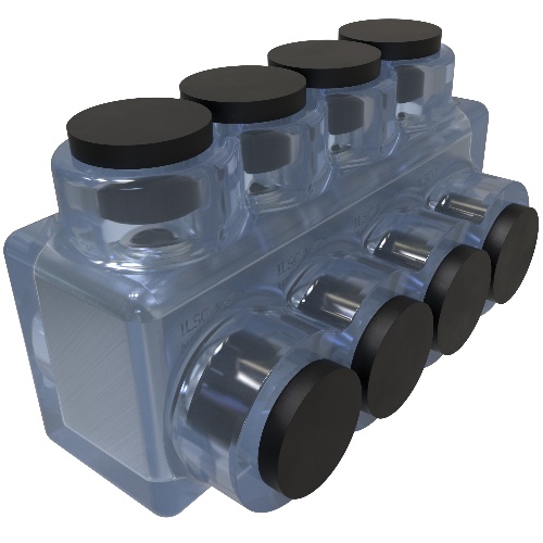 Ilsco ECTS-4-350 - ClearTap Insulated Aluminum Multi-Tap Connector, Conductor Range 350-6, 4 Ports, Single Sided Entry, Tin Plated, UL, CSA