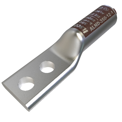 Ilsco ALND-350-12-134 - Surecrimp Aluminum Compression Lug for 350 kcmil conductors, 2 holes, 1/2in bolt size, tin plated with UL and CSA ratings. Long barrel design with no sight window. Suitable for 35kV voltage, UL 486A/B listed with a temperature rating of 90°C. DE-OX® coating included. Suitable for copper and aluminum conductors.