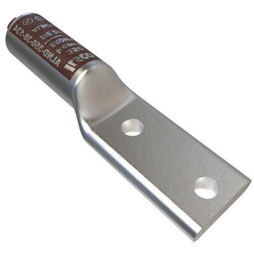 Ilsco ALND-350-38-134 - Surecrimp Aluminum Compression Lug, Conductor Size 350, 2 Holes, 3/8in Bolt Size, 1-3/4in Hole Spacing, Long Barrel, No Sight Window, Tin Plated, UL, CSA