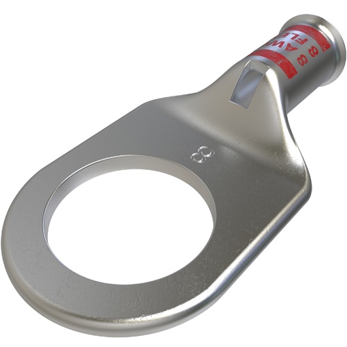 Ilsco CCL-8-14 - Copper Compression Lug for 8 AWG conductors, 1 hole with 1/4in bolt size, tin plated for corrosion resistance. UL and CSA listed, rated for 35kV, 90°C temperature rating. Mounting hole diameter of 0.276in, tang thickness of 0.07in. Suitable for flex conductors G,H,I,K,M,DLO. Suitable for compression connections. No DE-OX®.
