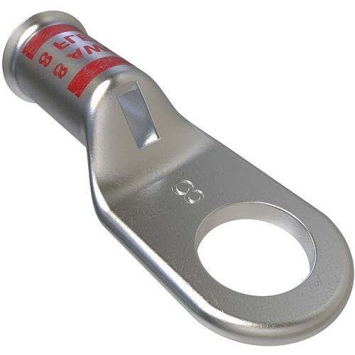 Ilsco CCL-8-14 - Copper Compression Lug, Conductor Size 8, 1 Hole, 1/4in Bolt Size, Standard Barrel, Sight Window, Tin Plated, UL, CSA