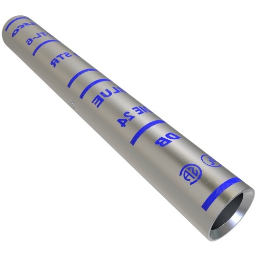 Ilsco CTL-6 - Surecrimp Copper Compression Sleeve, Conductor Size 6, Long Barrel, Tin Plated connector finish, UL, CSA, NEMA Code S-588-1. Direct burial approved with a 35 kV voltage rating. Temperature rated at 90°C. Suitable for stranded 6 Str copper conductors. Compact design with 180° connecting angle. Blue color coded for easy identification.